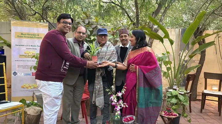 ग्रेटर नोएडा – म्यूज़िक वेरांडाह और ग्रीन वेरांडाह द्वारा आयोजित दो-दिवसीय वेरांडाह साहित्य और संगीत उत्सव 29 और 30 नवंबर को खुशी और सकारात्मक माहौल के साथ पूरा हुआ। इस उत्सव का मुख्य संदेश था कि संगीत, साहित्य और कला हमारे मन और शरीर के स्वास्थ्य में बहुत मदद करते हैं। पूरे कार्यक्रम में प्रकृति को बचाने, पर्यावरण की देखभाल और प्रकृति से प्यार जैसे विषयों पर खास ध्यान दिया गया।उत्सव की शुरुआत अंतरराष्ट्रीय फिल्म निर्माता और कार्टूनिस्ट डॉ. हरविंदर मन्नकर (मोटू-पतलू के लिए प्रसिद्ध) और कृति नारंग मिश्रा, संस्थापक -Katalytis ने स्वर्ण नगरी में की। मंच एक साधारण, घर जैसे वेरांडा था, जहां चारों तरफ पेड़ और शांत वातावरण था।उत्सव में गुफ्तगू सत्र, कहानी सुनाने के सत्र, स्वास्थ्य और संस्कृति पर बातचीत, और आकाश सेठी व आलोक अविरल द्वारा आयोजित विशेष कवि सम्मेलन शामिल थे।गुरु दत्त और सलिल चौधरी के 100 साल पूरे होने पर रखी गई खास संगीत प्रस्तुतियाँ और धर्मेंद्र को दी गई संगीतमय श्रद्धांजलि ने दर्शकों को बहुत भावुक कर दिया। इस मौके पर श्री विमल कुमार शर्मा (IAS, सेवानिवृत्त), सेक्रेटरी जनरल UNACCC ने कहा कि पर्यावरण की देखभाल और प्रकृति का सम्मान हमारी रोज़मर्रा की ज़िंदगी का हिस्सा होना चाहिए। उन्होंने बताया कि प्रकृति के करीब रहना हमारे शारीरिक और मानसिक स्वास्थ्य दोनों को बेहतर बनाता है।उत्सव के क्यूरेटर्स डॉ. तनवीर नावेद ,डिप्टी डीन,हेल्थ एंड एलाइड साइंसेज और अनीला रामपुरिया फाउंडर म्यूज़िक वरांडा ने कहा कि ऐसे छोटे, सरल और जोड़ने वाले कार्यक्रम लोगों के दिलों पर ज्यादा असर छोड़ते हैं और समुदाय में अपनापन बढ़ाते हैं।अपने संबोधन में डॉ. मन्नकर ने कहा कि हमें अपनी जड़ों से जुड़े रहना चाहिए, अपने माता-पिता का सम्मान करना चाहिए और अच्छे मानव मूल्य अपनाने चाहिए।प्रसिद्ध वास्तुकार अनुराग खंडेलवाल, जो भारत में लकड़ी के घर बनाने में जाने जाते हैं, ने वहां लगे वुडन हाउस को दिखाते हुए बताया कि लकड़ी के घर कैसे सेहत के लिए अच्छे होते हैं और पर्यावरण को भी सुरक्षित रखते हैं।प्रख्यात शिक्षाविदों ने इस महोत्सव में उपस्थित होकर यह दर्शाया कि वर्तमान शिक्षा प्रणाली को मूल्य-उन्मुख और रचनात्मकता व चेतना के साथ संतुलित होना चाहिए। पारुल सिंह, वैज्ञानिक अधिकारी, एमिटी विश्वविद्यालय, नोएडा डॉ. रिपुदमन गौड़, डीन, लॉयड बिज़नेस स्कूल डॉ. सैयद एस. अली एसोसिएट प्रोफेसर, लॉयड इंस्टीट्यूट ऑफ मैनेजमेंट एंड टेक्नोलॉजी, ग्रेटर नोएडा डॉ. अर्चना शर्मा, एसोसिएट प्रोफेसर, एमिटी विश्वविद्यालय एवं सामाजिक कार्यकर्ता डॉ. प्रिया शर्मा, सहायक प्रोफेसर, शारदा विश्वविद्यालय उत्सव का अंत इस सोच के साथ हुआ कि अगर हम कला, 